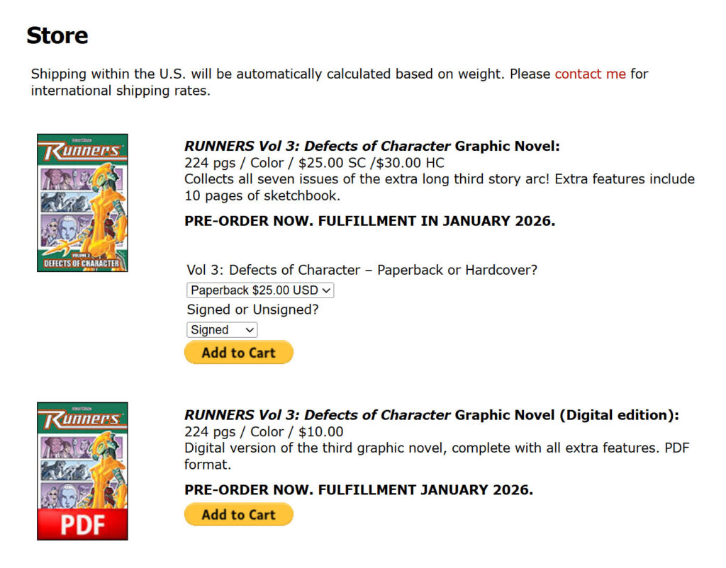 For those who did not back the Kickstarter, you can now PRE-ORDER Volume 3 through my Store here on RunnersUniverse. Assuming the Paypal code works properly. If there are any issues, please let me know. Any pre-ordered books will ship in January 2026.