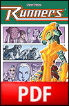 RUNNERS Vol 3: Defects of Character Graphic Novel (Digital edition): 224 pgs / Color / $10.00 Digital version of the third graphic novel, complete with all extra features. PDF format.